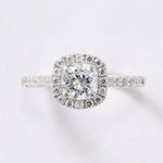 Anillo de compromiso hecho a mano en plata 925, con cristal central engastada tipo halo y delicados cristales facetados que recorren el aro. Su estructura elevada revela sutiles detalles bajo la montura, aportando un brillo escultural y elegante desde todos los ángulos. Una pieza que combina armonía y carácter en cada trazo.