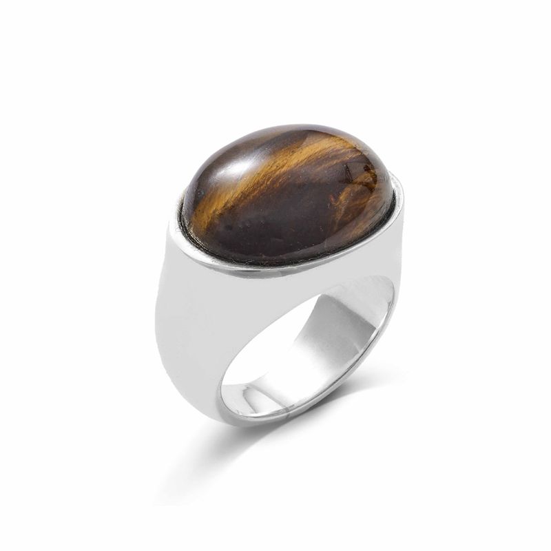 Anillo elaborado a mano en plata 925 y piedra ojo de tigre.