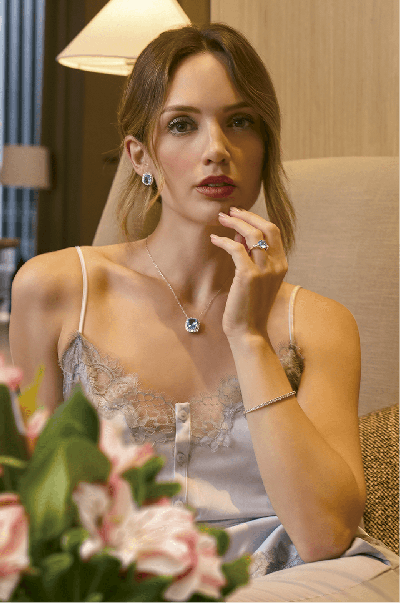 Aretes hechos a mano en plata 925 con cristales transparentes y acquamarina.