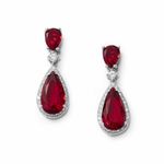 Aretes elaborados a mano en plata 925 con diseño de gota en tono rubí, engastada en cristales.