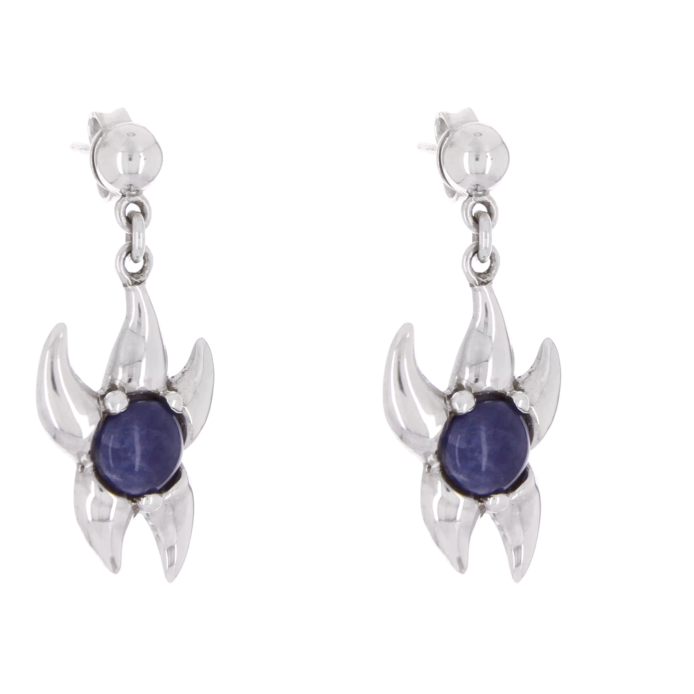 Aretes hechos a mano en plata 925 con piedra sodalita