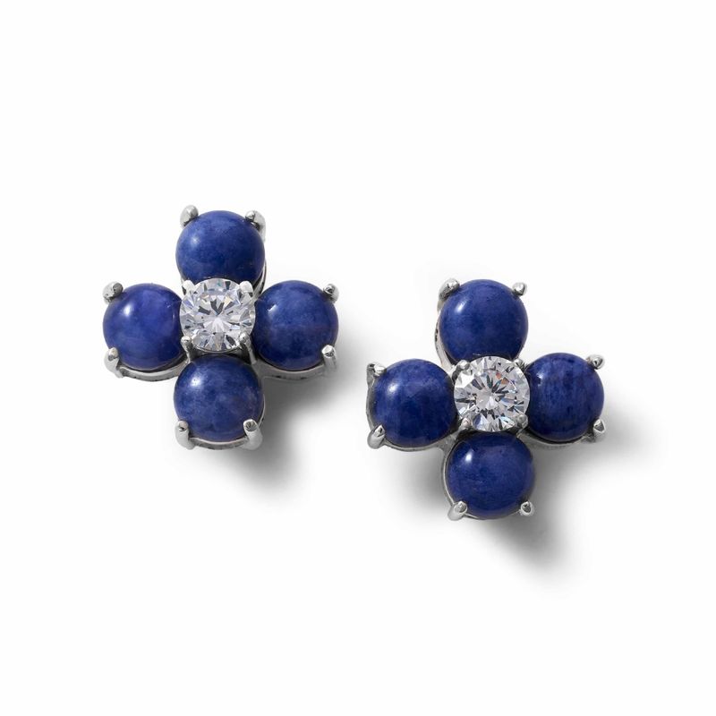 Aretes elaborados a mano en plata 925, con diseño en forma de flor en piedra sodalita y cristal
