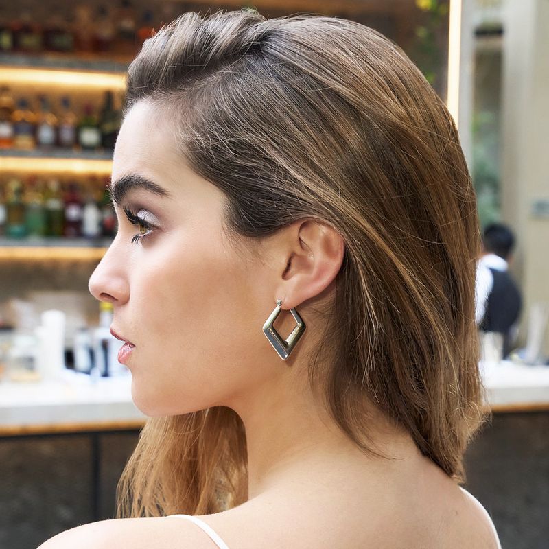 Aretes elaborados a mano en plata 925 con diseño geométrico cuadrado.