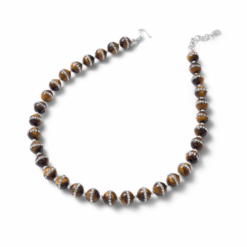 Collar elaborado a mano en plata 925 hecho con piedra ojo de tigre y cristales.