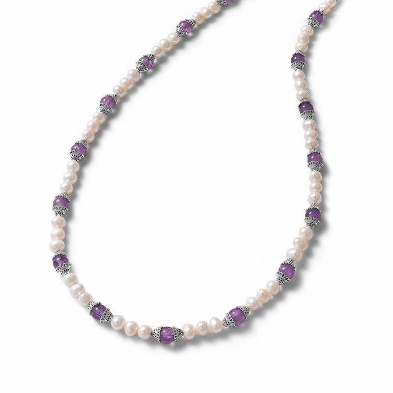 Collar elaborado a mano en plata 925 con perlas y piedra amatista.
