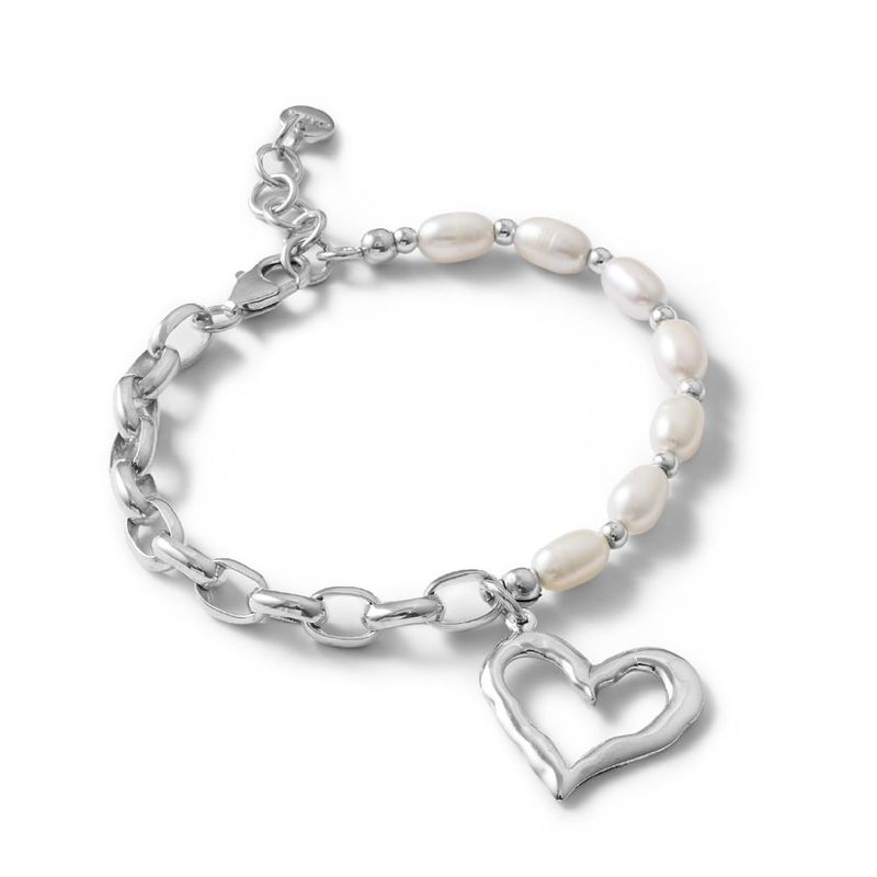 Pulsera elaborada a mano en plata 925, con perlas dije de corazón