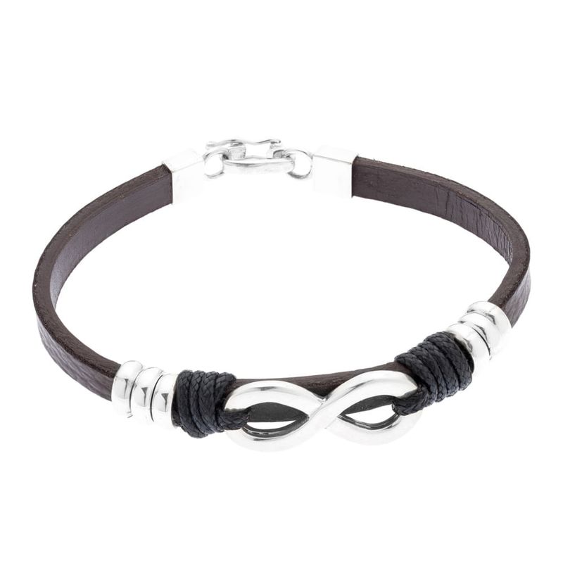 Pulsera hecha a mano en plata 925 y cuero italiano con dije de infinito