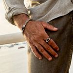 Pulsera hecha a mano en plata 925 tejida con diseño texturizado y piedra obsidiana.