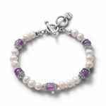 Pulsera elaborada a mano en plata 925 con perlas y piedra amatista.